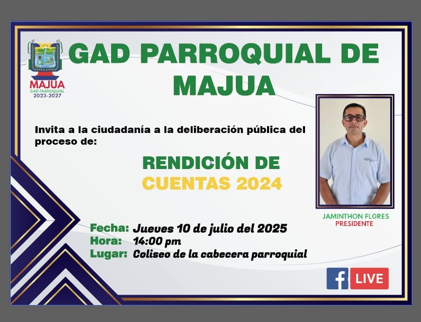 Leer más2019 EL GAD Parroquial Rural Posorja invita a la ciudadanía en general a visualizar la transmisión en vivo del informe de Rendición de Cuentas periodo fiscal 2019 a través de nuestra página oficial de Facebook.